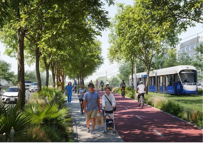 The line features 15 stations, a fleet of electric trains, and will be expandable to continue to grow with the city. It will offer a lot more than just a ride — including access to 200K+ jobs, miles of new pedestrian and cyclist paths, more trees and shade along the line, and a new bridge across Lady Bird Lake.